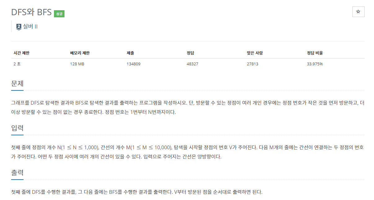 [ 자바 / Java ] 백준 1260 : DFS 와 BFS 본문