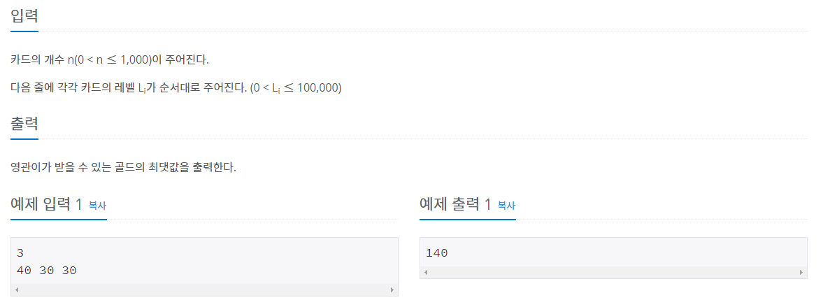 sum += L; // 모든 카드 레벨의 합을 구한다